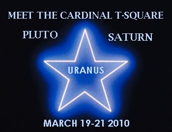 In celebration of the day, Donna Cunningham, Mandi Lockley, and I are coordinating a Blog Carnival March 19-21, 2010, to showcase articles on the three planets involved in the transiting cardinal T-Square. The transit will be in effect 2010-2014 ~ a long term effect! The Aries Ingress Blog Carnival will present a variety of essays and posts on ways you can contend with this bugger of an aspect.