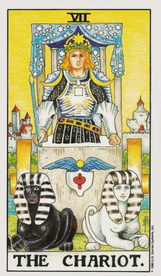 The Sun is in the sign of Cancer during the eclipse and in the Grand Cross alignment. Cancer, represented by The Chariot, is the natural home of the Moon and, therefore, also The High Priestess. The King of Cups and the Chariot, being cardinal energies, embody action backed by sensitivity and with an emotionally attached undercurrent.