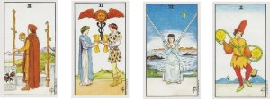 The Cardinal T-square of Pluto/Uranus/Saturn occured in the first decan of each of the cardinal signs, signifying action and pure energies of the signs. Twos are the sign of the Moon ~ duality, partnership, union. Perhaps in the coming months we can become one with some difficult issue we face. Be supportive, understanding but not a doormat, and strong. The minor arcana cards relating to this alignment are the 2’s: