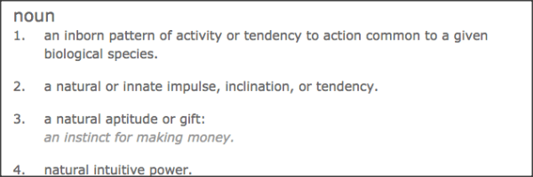 I find it interesting that the dictionary lists intuition under instinct, but not instinct under intuition.