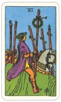 Card 3, The Hidden Factor: Temperance/The Guide is the card of Sagittarius and gives additional support to the optimistic, adventurous Jupiterian influence in the 6 of Wands. The card is a blending of forces, very appropriate for the First Quarter phase which may need adaptation to succeed. Put your alchemist skills to work in this phase.