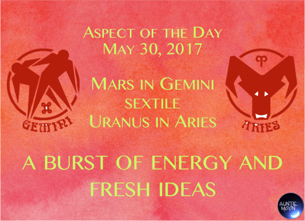 Aspect of the Day: Mars sextile Uranus Posted on May 30, 2017May 30, 2017 by CJ Wright Planets at 26°57′. Minor irritations possible for the next few days. Save Save Save Save Save Share this: Click to share on Facebook (Opens in new window) Facebook Click to email a link to a friend (Opens in new window) Email Click to print (Opens in new window) Print More Click to share on LinkedIn (Opens in new window) LinkedIn Click to share on Pinterest (Opens in new window) Pinterest Click to share on Reddit (Opens in new window) Reddit Like Loading...