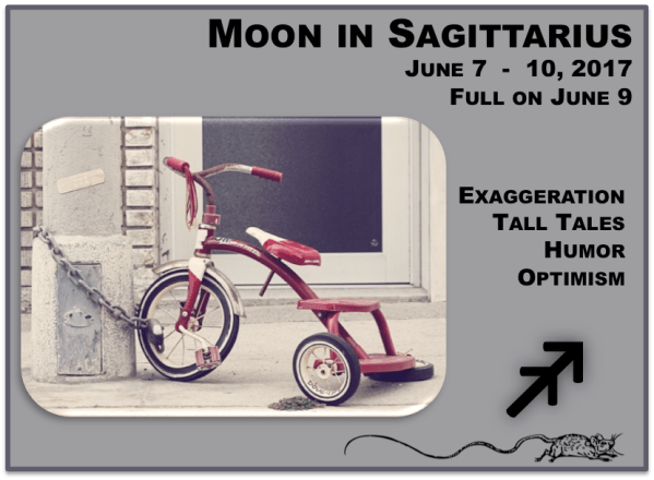 Moon in Sagittarius, June 7, 7:01pm – June 10, 7:37am EDT. Full Moon at 9:11am, June 9th.
