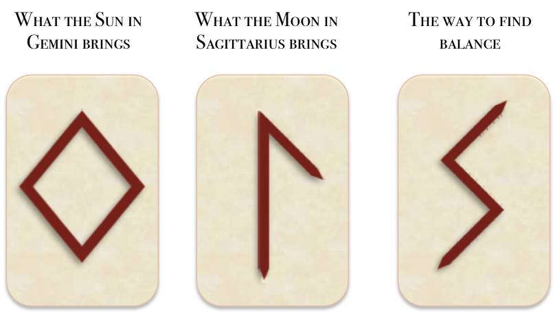 Rather than interpret these runes for you, I used the basic meanings from the chart below. Apply them to what’s happening for you now. Most important is to find the balance that all Full Moons require. I will point out that the rune for Moon in Sagittarius sounds a lot like Jupiter, even though it is associated with the Sun according to the chart. Take advantage of that Full Moon Power!