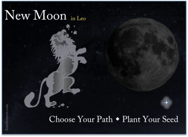 This is a baby New Moon taking place at 00Leo. Along with her consort, the Sun, the Moon forms a triple conjunction with Mars, currently at 1 Leo. That’s a feisty combination loading us with lots of energy to make major headway throughout this lunation. The Moon remains in Leo until July 25th, 6:34pm EDT.