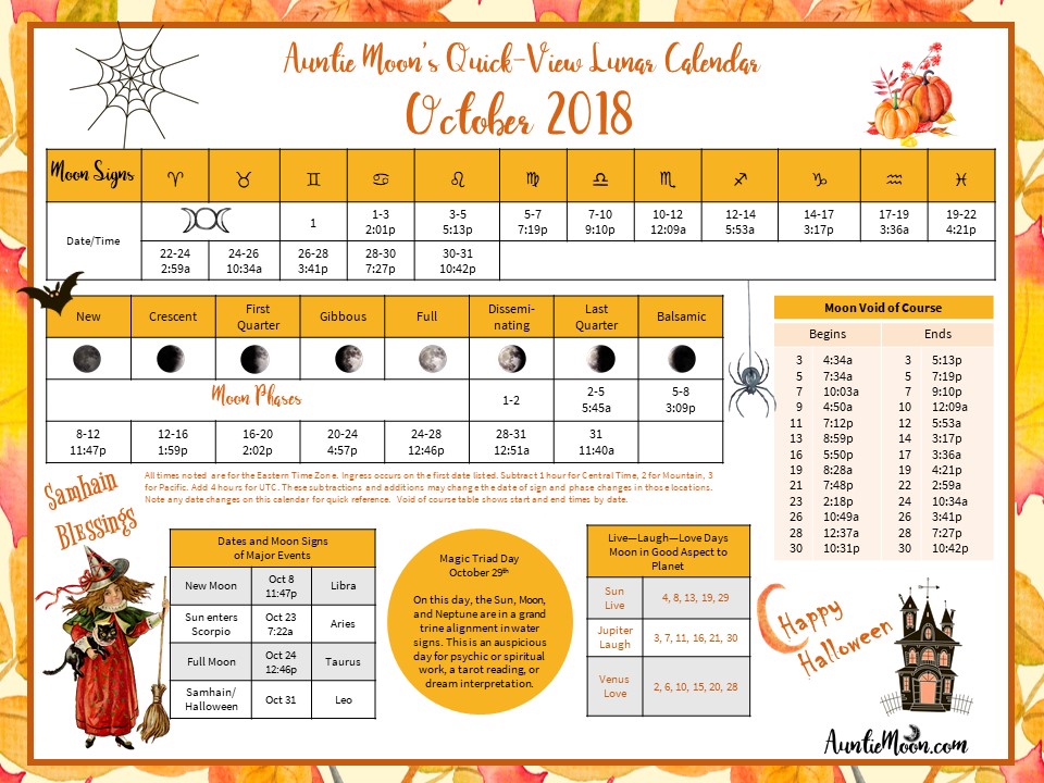 Auntie Moon’s Quick-View Lunar Calendar for 2019