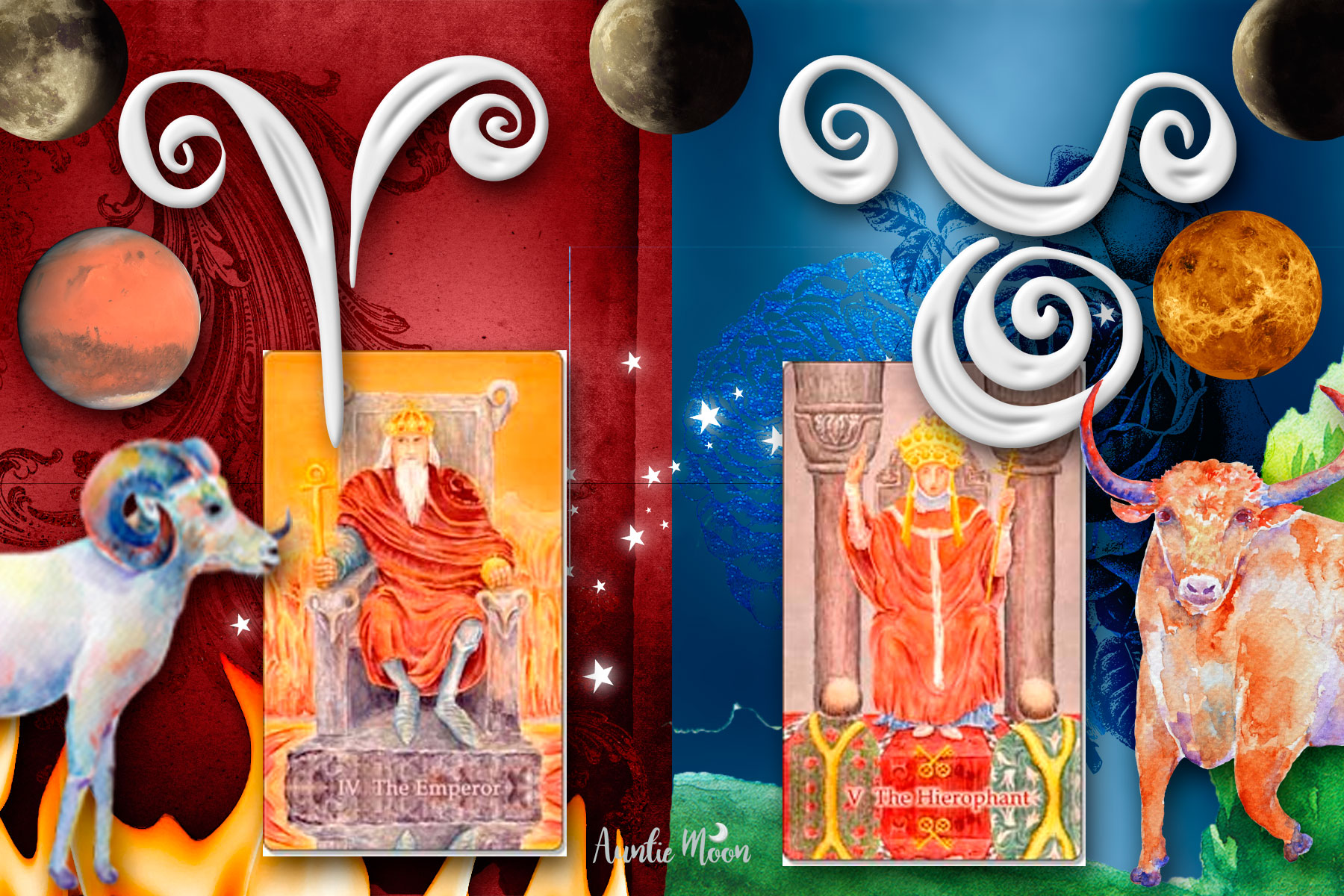 The change from Emperor to Hierophant is symbolic of Initiating energy giving way to a more traditional, grounded approach when the Moon changes signs. Nothing is ever easy, though, right?