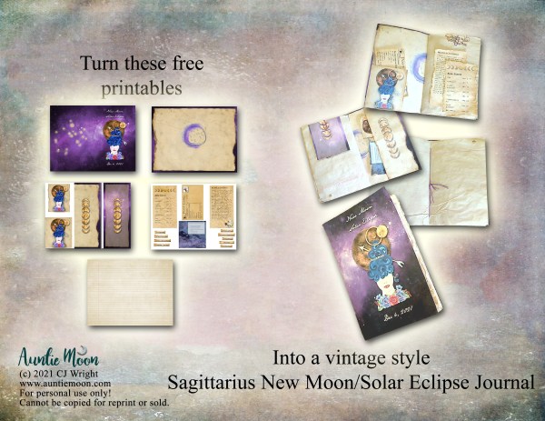 I don’t keep a big journal, so I find making these little booklets are fun and helpful. A quick flip-through video shows you how I put it together for myself using the cover for the December 4th date. (There are covers for both December 3 and 4 since the date of the New Moon/Solar Eclipse depends on which time zone you are in.) Following the video are some very brief instructions on constructing the journal.