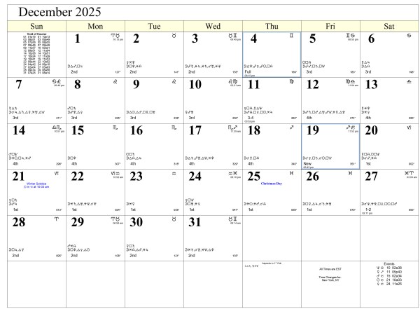 OK, it’s the 4th of December and the Moon is Full. What’s being illuminated at this Full Moon for me? No lunar calendars have been available for way too long. So here they are. Free downloads.