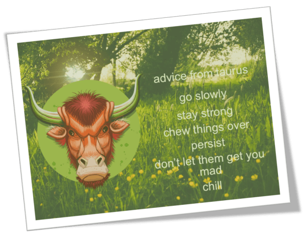 I was imagining what it would be like to ask for advice from the different zodiac signs. What would Aries say if I needed to get moving on something? Or, how would Virgo tackle a project?