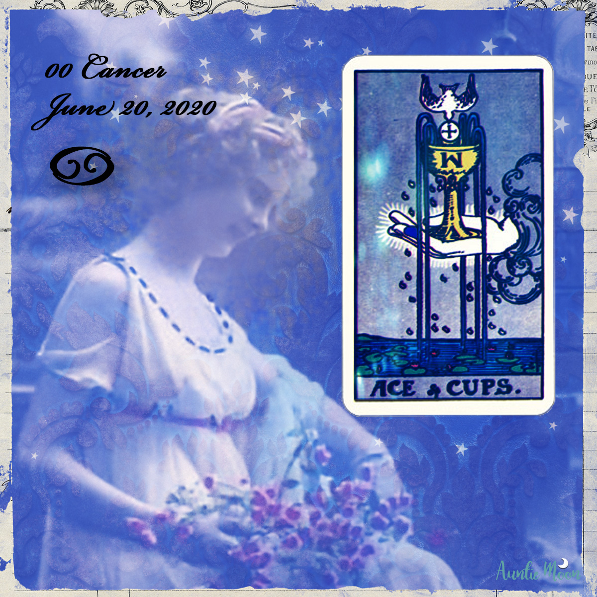 The Sun begins its transit of Cancer at the Summer Solstice, also known as Litha or Midsummer, on June 20th. The Ace of Cups represents this cardinal point of the zodiac.