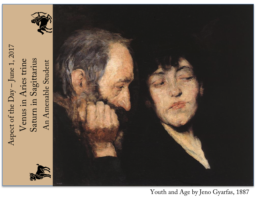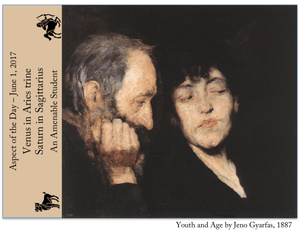 Beauty (Venus) + youth (Aries) in harmony with wisdom (Sagittarius) + age (Saturn).