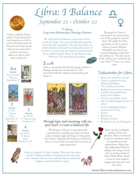 The sign of the scales is about justice, diplomacy, refinement, and rationality. Libra is not “love.” That’s the domain of Venus, ruler of Libra. Venus and Libra qualities sometimes get interchanged. Venus is the What (love) and Libra is the How (rationally, seeking harmony). Venus loves differently depending upon her sign.