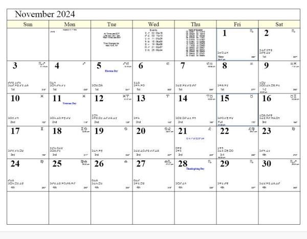 Here are several free Lunar Calendars, a transit diary for November, and a transit report for the major highlights of November.