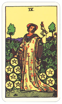 The 9 of Pentacles asks if you are pleased with your physical state—your health, appearance, work, home, and finances? Do you feel self-reliant and capable? Have the choices you made moved you nearer or further from where you would like to be? Have you fallen behind? Are you just holding steady, or maybe you’re ahead of the game? Tame your baser instincts and refine them daily, as the lady in the picture has trained her falcon. Learn to control them so that they, too, may serve you well.