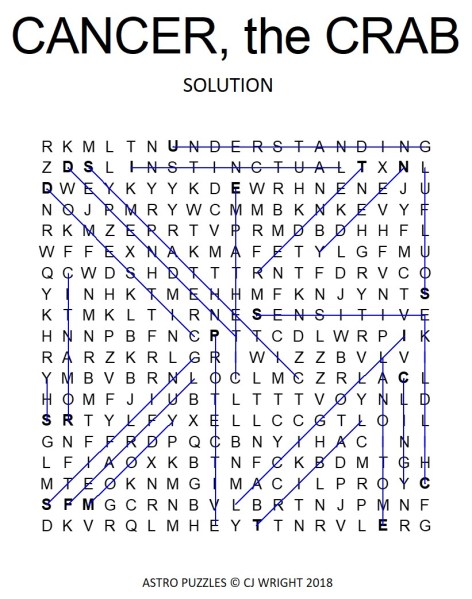 Did you get the free Cancer, the Crab Word Search Puzzle and are stumped on some of the words? Here’s the solution.