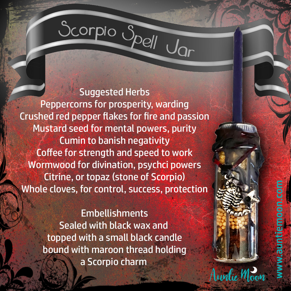 There are so many to choose from. Decide if you would like the spell jar or blend to be used for a specific purpose other than it being for Scorpio. Choose herbs and oil for protection when working your magic, to increase passion, or to honor the ancestors at Samhain. Here are more herbs for Scorpio not listed above: